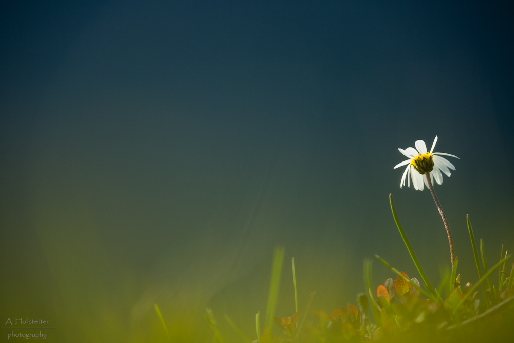 Und eine Margerite vor einem tiefen Abgrund (Wo dann übrigens die Gämsen waren…)